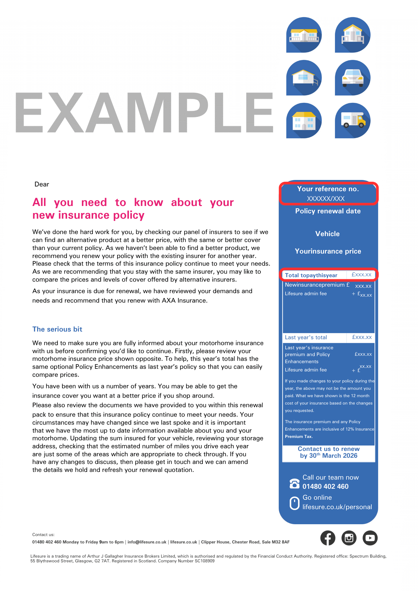 - To renew online you must enter your total renewal premium for the coming year and not last year’s premium. This can be found on the right-hand side of the cover letter in your renewal pack, under 'Total to pay this year' as highlighted in the image below.